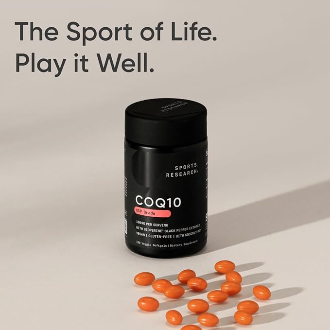 Sports Research CoQ10 (100mg) Enhanced w/Coconut Oil & Bioperine (Black Pepper) for Better Absorption | Vegan Certified, Non-GMO Verified (120 Veggie Softgels)