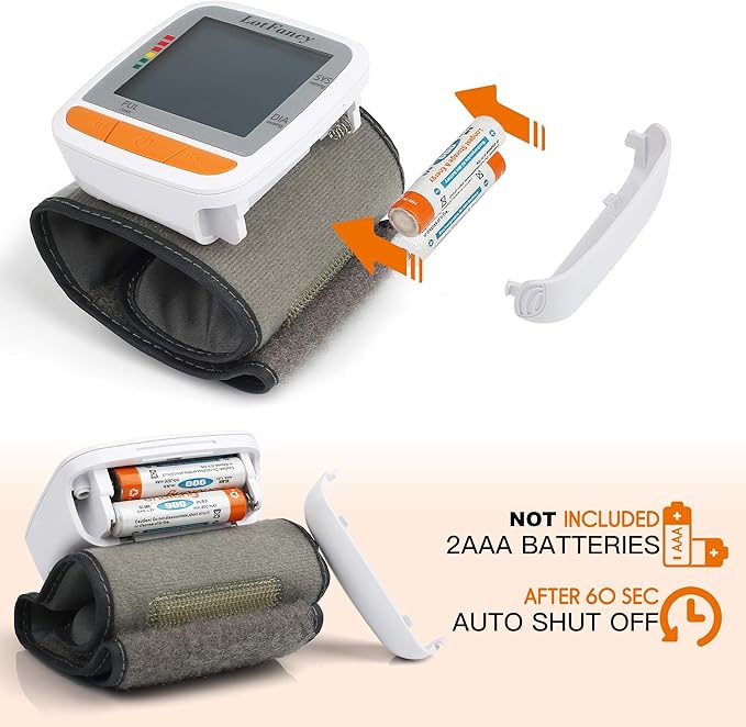 - ✔2 USERS & 180 SETS MEMORY: Our wrist BP devices are designed for 2 users, each for 90 readings records with date & time stamp respectively. Ideal for senior couples or individuals with hypertension or arrhythmia to track their health status; No Battery Included