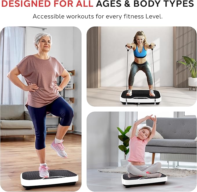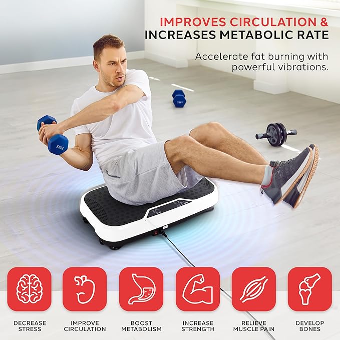- ADJUSTABLE VIBRATION SPEED: The vibrating fitness exercise equipment features 40 level vibration speed and timer setting leaves you in full control of your workout. Has high powered vibration for accelerated fat burning w/ 265lbs max weight capacity