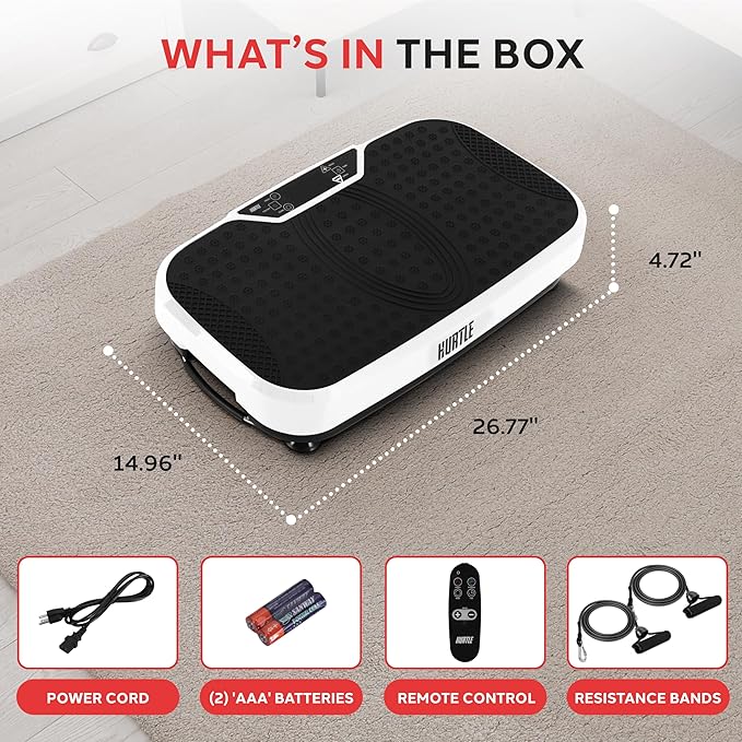 Hurtle Fitness Vibration Platform Machine - Home Gym Whole Body Shaker Exercise Machine Workout Trainer Fast Weight Loss w/Resistance Bands Easy Carry Wheel Remote Adjustable Speed