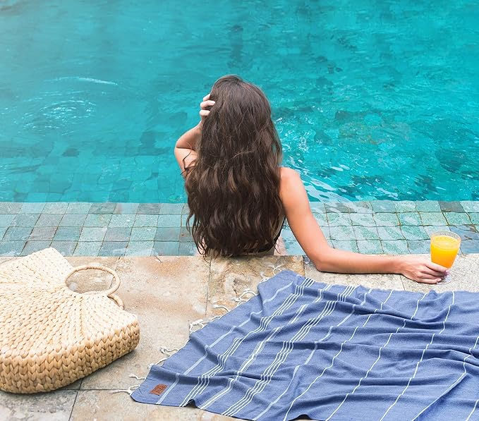 - MODERN COTTON BEACH TOWELS: Experience the Lycia Turkish beach towel bulk in deep navy blue; crafted in Turkiye from 100% natural cotton, this sand free beach towel delivers signature softness and absorbency with a timeless aesthetic