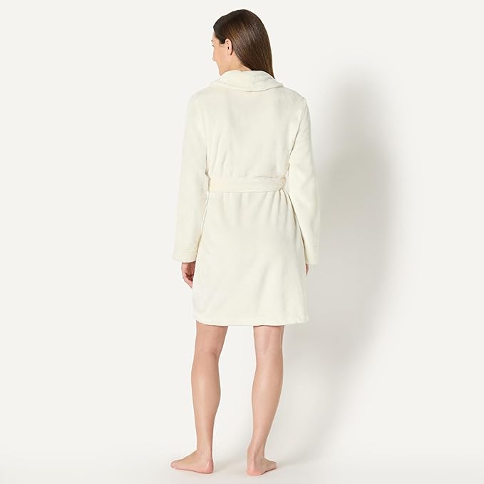 • MID-LENGTH PLUSH ROBE: This super soft robe provides the ultimate comfort when drinking your early morning coffee or winding down after a day at work. Style back to Amazon Essential's Slippers to keep your feet snuggled and warm.
