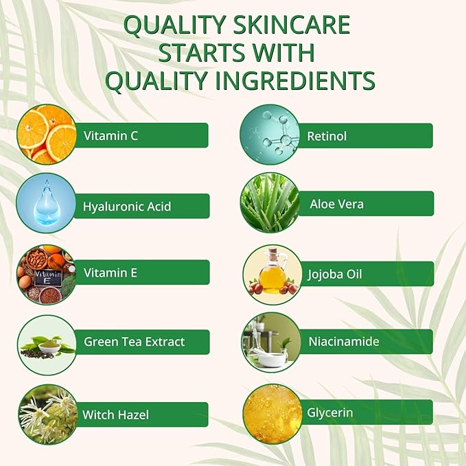 - ✅ HYDRATING HYALURONIC ACID SERUM: Our serum hyaluronic acid with vitamin C serum, aloe vera, jojoba oil and green tea extract is a deeply hydrating skin serum for face that plumps and brightens skin for a profound anti aging effect. By attracting and retaining moisture within the skin, vitamin C and hyaluronic acid serum for face helps plump up fine lines and wrinkles. Our skin care hyaluronic acid face serums sooth and calm irritated skin, reducing redness and inflammation.