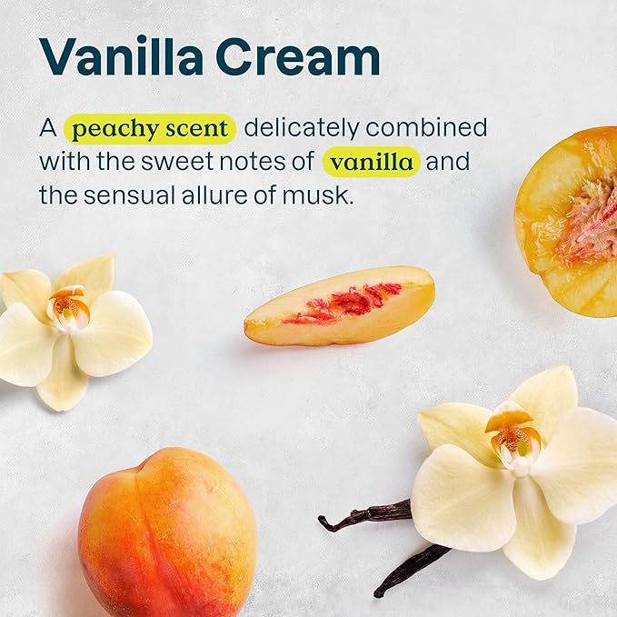 - VANILLA CREAM SCENT: This body cream for extremely dry skin is infused in a soft and comforting scent where juicy peach blends with sweet vanilla, wrapping the skin in creamy warmth.