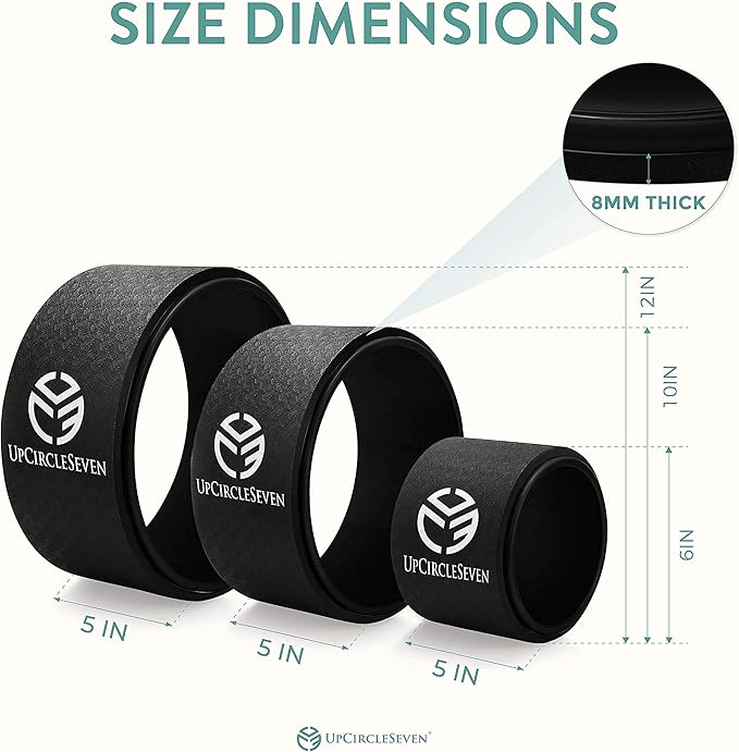 UpCircleSeven Yoga Wheel Set - Strongest & Most Comfortable Yoga Prop Wheel, 3 Pack for Back Pain and Stretching (12, 10, 6 inch)