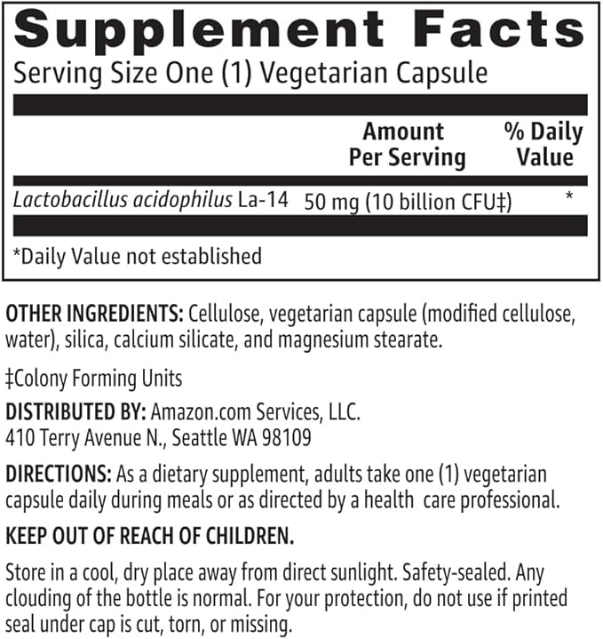 Amazon Basics Daily Probiotic, 10 Billion Active Cultures, Supporting Digestive and Intestinal Health, Capsule, 60 Count, Two Month Supply