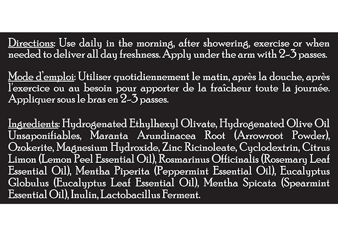 - Key Ingredients: Zinc ricinoleate absorbs and neutralizes odor. Arrowroot soothes the sensitive skin under your arm by providing deep moisture. These ingredients and other powerful natural ingredients have been scientifically formulated to create the best men's aluminum free deodorant.