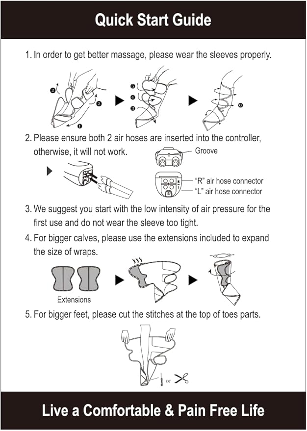 - LARGER & ADJUSTABLE SIZE WITH SIZE EXTENSIONS - the leg and foot wraps can be adjusted easily to change the size and intensity, max calves size can be 28.5 inches with 2 size extensions included for different people to use. A portable storage bag inside, portable and easy to carry.