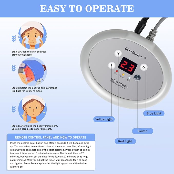 - Skin Care Usage-Pressing the desired color button and after 3 seconds it will beep and light up ,You can press 2-3 desired color buttons at the same time to get the COMBINATION colors