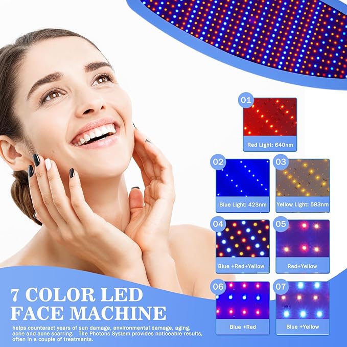 - Red light therapy for face-Red Light:640nm Blue Light:423nm Yellow Light:583nm,Infrared Light:810nm ,Red light is visible , and infrared is invisible.