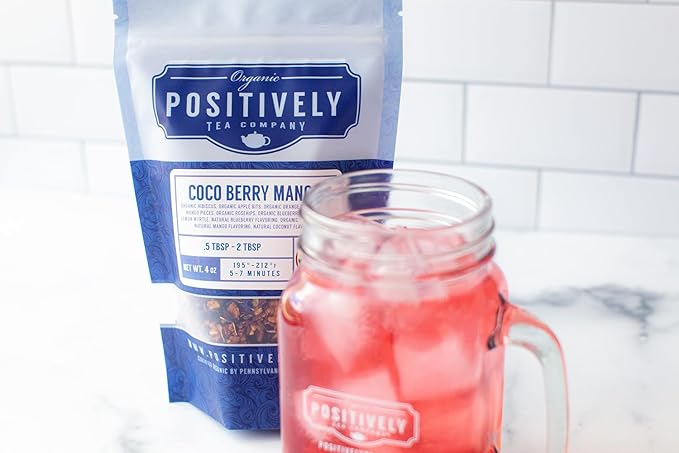 Organic Positively Tea Company, Coco Berry Mango, Herbal Tea, Loose Leaf, 4 Ounce