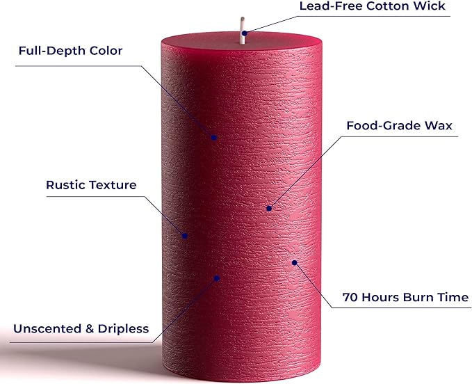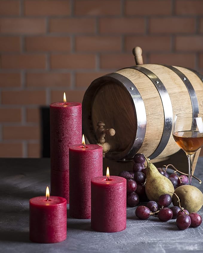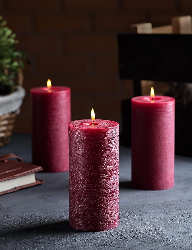 Set of 3 Pillar Candles 3" x 6" Unscented Handpoured Weddings, Home Decoration, Restaurants, Spa, Church Smokeless Cotton Wick - Burgundy