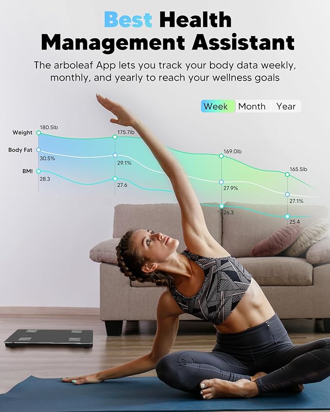 - Effortless Progress Tracking, Daily to Yearly: Use the arboleaf app to track your body composition daily, weekly, monthly, or annually—helping you manage your health goals more effectively and sustainably