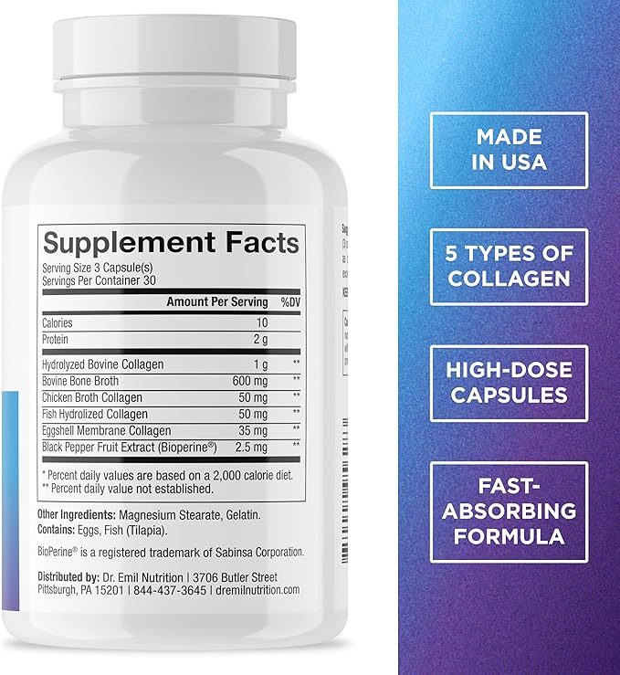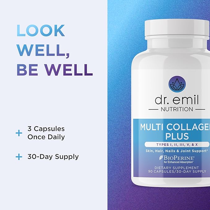 DR. EMIL NUTRITION Women's Multi Collagen Pills | Collagen Supplements | Support Hair, Skin, Nails & Joints | Hydrolyzed Collagen Supplements | Types I, II, III, V & X | 90 Capsules