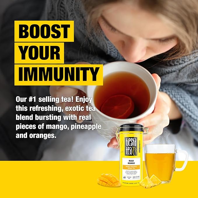 - MANGO PINEAPPLE HERBAL TEA: Embark on a tropical getaway with our Maui Mango blend. This exotic concoction of juicy pineapple, zesty oranges, and succulent mangoes will whisk you away to a sunny, sandy paradise with every sip. Whether you prefer it hot or iced, savor the essence of summer with each delightful sip.