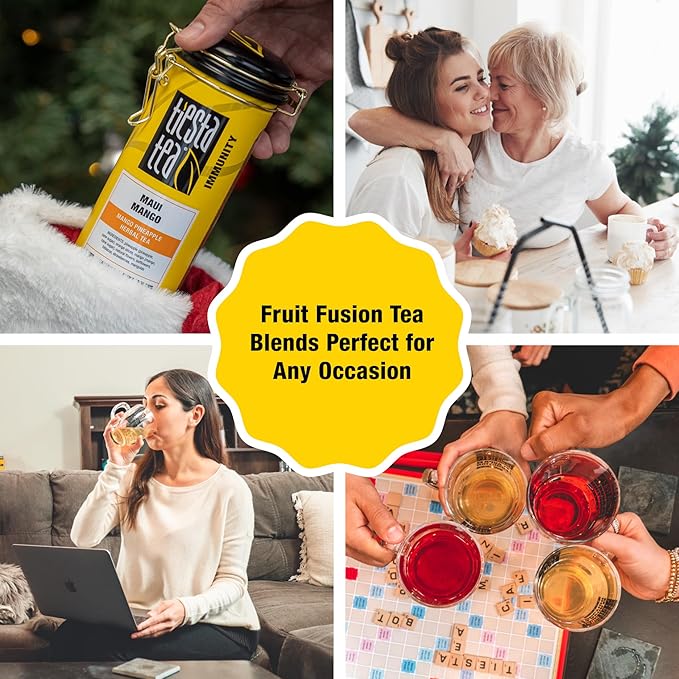 - PREMIUM LOOSE LEAF TEA BLEND: We've artfully combined pineapple, orange slices, hibiscus, and mango to craft a premium caffeine-free tea. Our commitment to quality means you can see, smell, and taste the difference in every cup. Say goodbye to disposable herbal tea bags and embark on a journey to discover the distinctive Tiesta Tea experience.