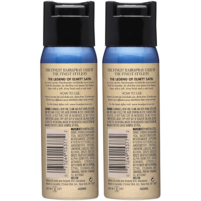 L'Oreal Paris Hair Care Elnett Extra Strong Hold Travel Size Hairspray, Long Lasting Plus Humidity Resistant, Hair Spray, 2.2 Ounce (2 Count)