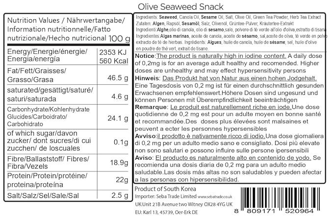 - HEALTH BENEFITS : Seaweed is a SUPERFOOD with lots of nutritional benefits! Rich in nutrients - protein, fiber, minerals and iodine. Our Roasted Seaweed Sheets are vegan, gluten-free and no artificial preservatives, which can be enjoyed by people of all ages