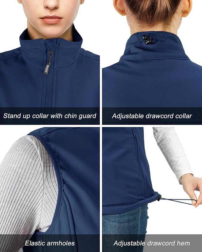 - Windproof & Water-resistant Fleece-lined Softshell Vest---- The outer fabric sheds water and blocks wind well while retaining heat with the soft cozy fleece backing, helping you stay warm without being weighed down.