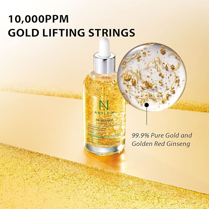 - FEEL THE GOODNESS OF 24K GOLD: AMPLE:N 24k Gold Shot Serum contains visible gold lifting strings to provide intense nutrition to the skin. Our facial serum also contains a triple elasticity recipe of Marine Collagen, Noni Fruit Extracts, and 2 types of Peptides to increase skin volume.