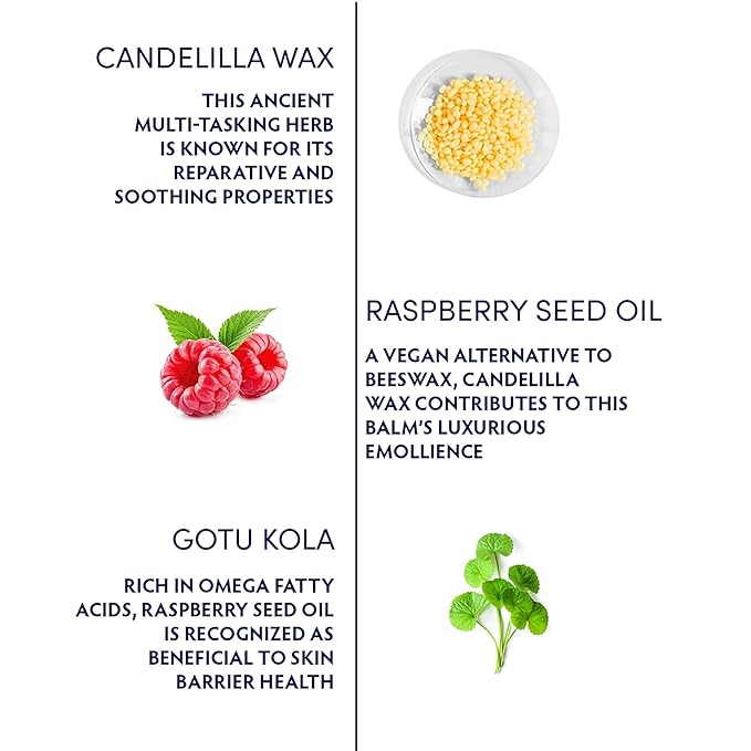 - Key Ingredients: Made with reparative Gotu Kola herb to help repair and soothe skin; calming Candelilla Wax; and omega fatty acid-rich Raspberry Seed Oil to support skin barrier health.