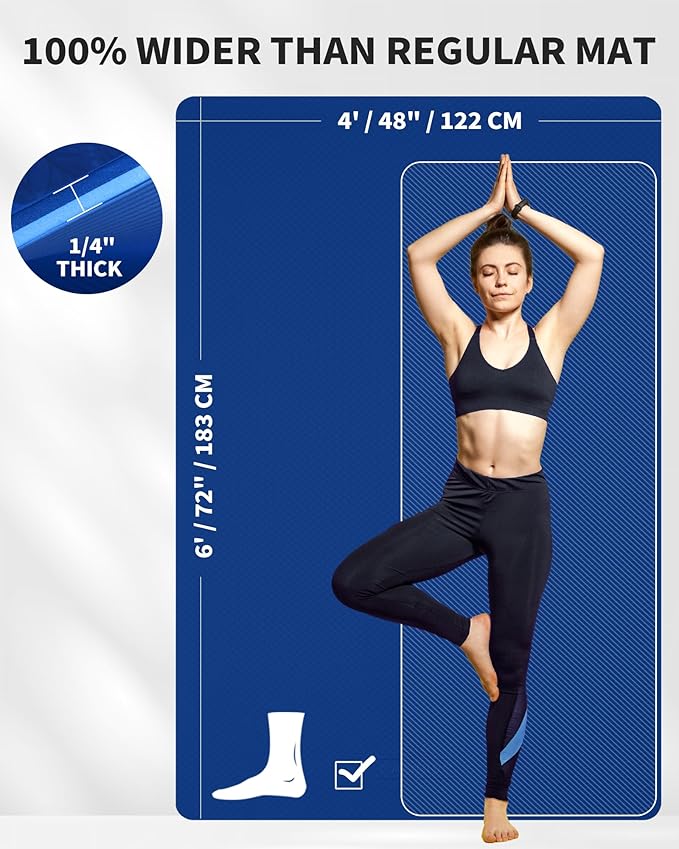 - Fitness Without Restriction: Extra length and width(72"x 48"), You will never feel restricted or limited by the size of this fitness mat; Extra-large space allows you to do any Yoga Poses, Pilates, Stretch, Foam Rolling, Cardio Workouts, Meditations and various barefoot bodyweight training like Squats, Lunges, Push-ups, Plank Variations, and Calisthenics