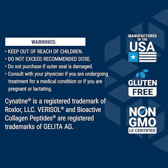 - Special Ingredients : Biotin, Calcium, Copper, Cynatine HNS (providing solubilized keratin), Niacin, Pantothenic acid, Silicon, VERISOL Bioactive Collagen Peptides, Vitamin B6, Zinc Biotin, Calcium, Copper, Cynatine HNS (providing solubilized keratin), Niacin, Pantothenic acid, Silicon, VERISOL Bioactive Collagen Peptides, Vitamin B6, Zinc