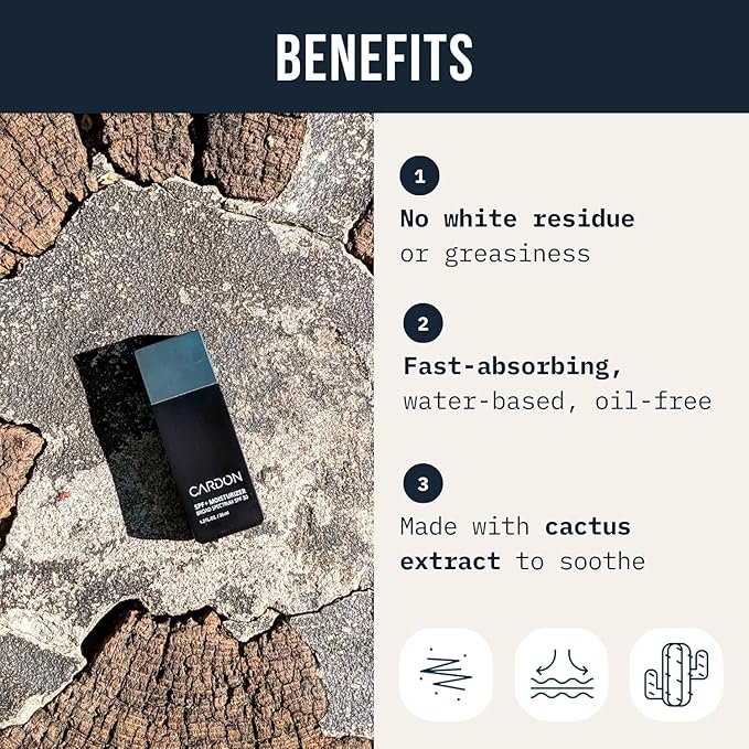 - Meet Cardon: A modern men’s skin care line with clean, multifunctional formulas powered by Korean skin care innovation. Our water-based, oil-free SPF 30 face moisturizer delivers deep hydration and broad-spectrum protection. Fast-absorbing and zinc-free with no white cast—this lightweight moisturizer for face with sun block won’t clog pores or leave you shiny.
