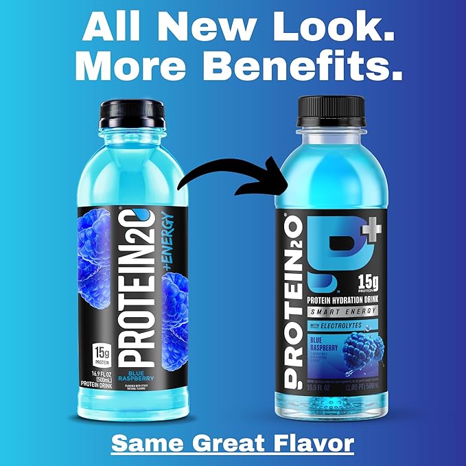 Protein2o 15g Whey Protein Isolate Hydration Drink Plus Energy & Focus, 350mg of Electrolytes, Vitamins B5 & B6, Sugar Free, Energy Variety Pack, 16.9 oz Bottle (Pack of 12)