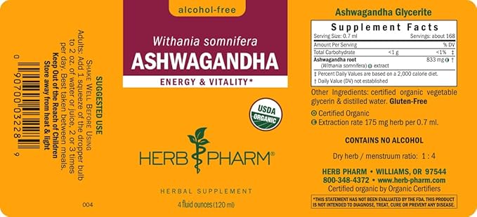 USDA Organic Ashwagandha Supplement for Stress Relief & Calm Energy*: Vegan Adaptogen Drops, Non-GMO Ashwagandha Extract, Alcohol-Free, 4 Oz | Up to 3 Months Supply