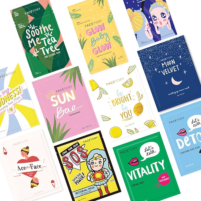 FACETORY K Beauty Face Mask Skin Care - FAVORITE 11 COLLECTION Sheet Mask Set | Natural Premium Korean Face Mask For All Skin Types - No Sulfates No Parabens (11 pc)