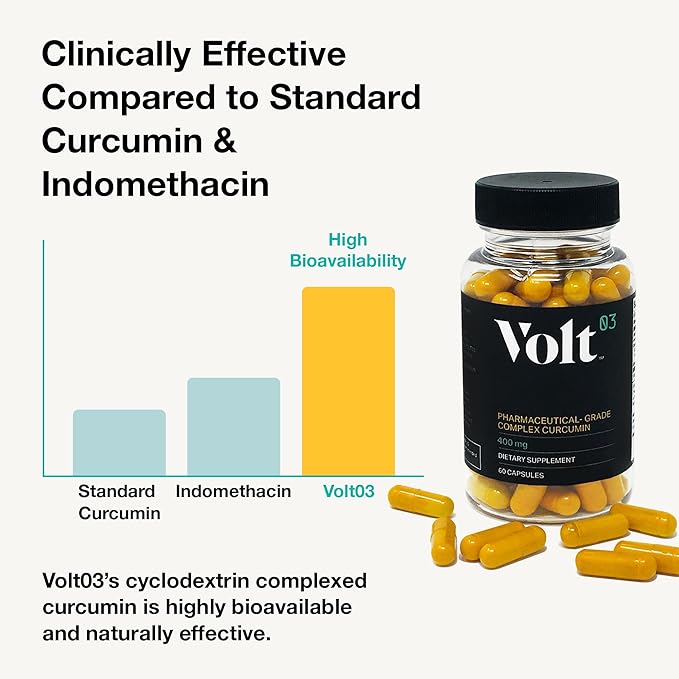 - Superior Health Properties: This turmeric curcumin supplement has published pre-clinical data which revealed a statistically significant health benefits versus indomethacin, standard curcumin, and placebo. Volt03 is the ONLY CURCUMIN to publish thes benefits versus prescription medicine and curcumin.