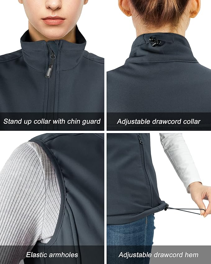 • Windproof & Water-resistant Fleece-lined Softshell Vest---- The outer fabric sheds water and blocks wind well while retaining heat with the soft cozy fleece backing, helping you stay warm without being weighed down.