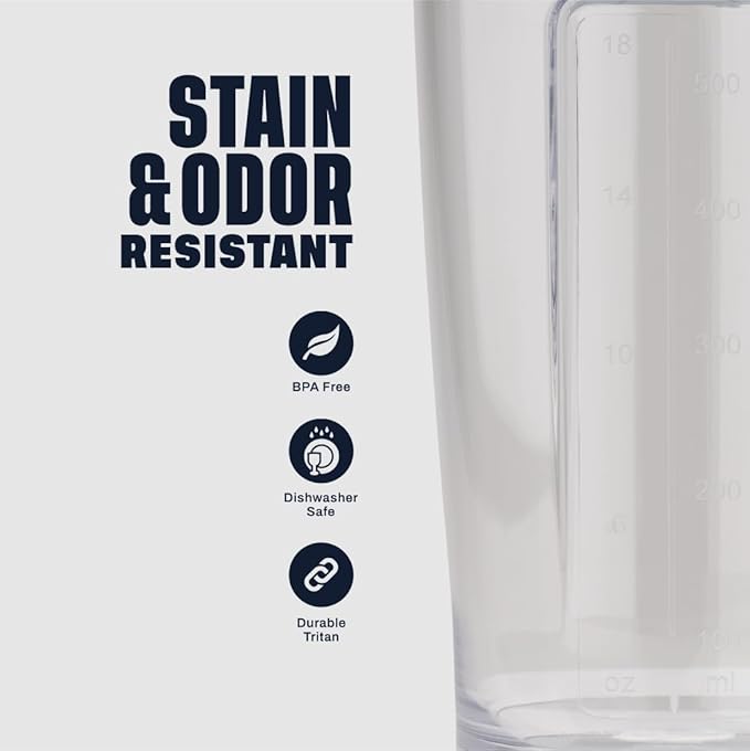 - 24-ounce capacity (note: measurements only go to 18 ounces) sleek and durable Pro24 shaker cup for mixing protein shakes, smoothies, and supplements