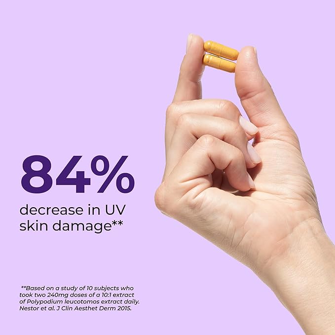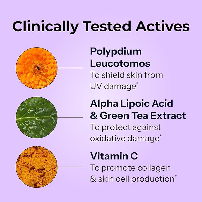 - SO LONG, SUN DAMAGED SKIN: Support sun damaged skin with this blend of plant extracts, polypodium leucotomos, antioxidants, and vitamin C for a healthy, younger-looking appearance. A thoughtful option for those looking to support even tone and visible skin texture.