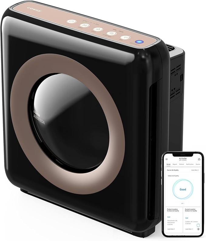 Coway Airmega AP-1512HHS App-Enabled Smart Technology, Compatible with Amazon Alexa True HEPA Air Purifier, Black/Bronze