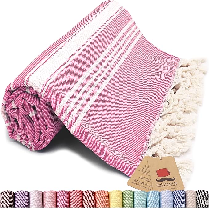 - Versatile: There are many ways to use Turkish Beach Towel. You can use the turkish towel as a scarf on the outside, shawl on the terminal, travel blanket on an airplane, oversized beach towel when you get off the plane and go to the beach. Quite useful as a hot pink beach towel. Or you can use as a bathroom towels, yoga mat towel, pool towel or a throw blanket in your house.