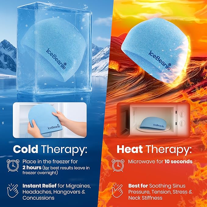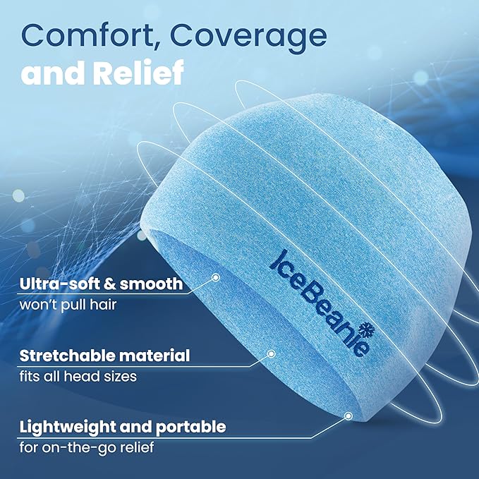 - LIGHTWEIGHT, PORTABLE ICE HAT FOR MIGRAINES: The IceBeanie ice hat is odorless, easy to use, and designed for relief on the go. Whether you’re at home, at work, or traveling, this headache ice pack is ready—simply freeze, heat, and wear. A versatile addition to your headache relief products collection for fast and effective migraine relief anytime, anywhere.