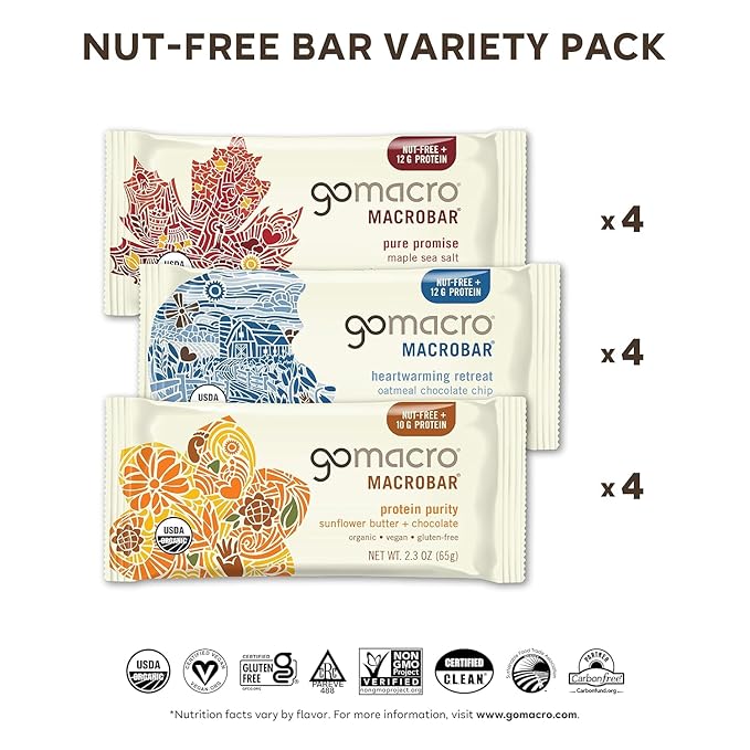 - FIND YOUR NEW FAVORITE NUT-FREE BAR: No nuts, no problem! This nut-free mix contains 4 bars of each of our 3 nut-free favorites including Sunflower Butter + Chocolate, Maple Sea Salt, and Oatmeal Chocolate Chip.