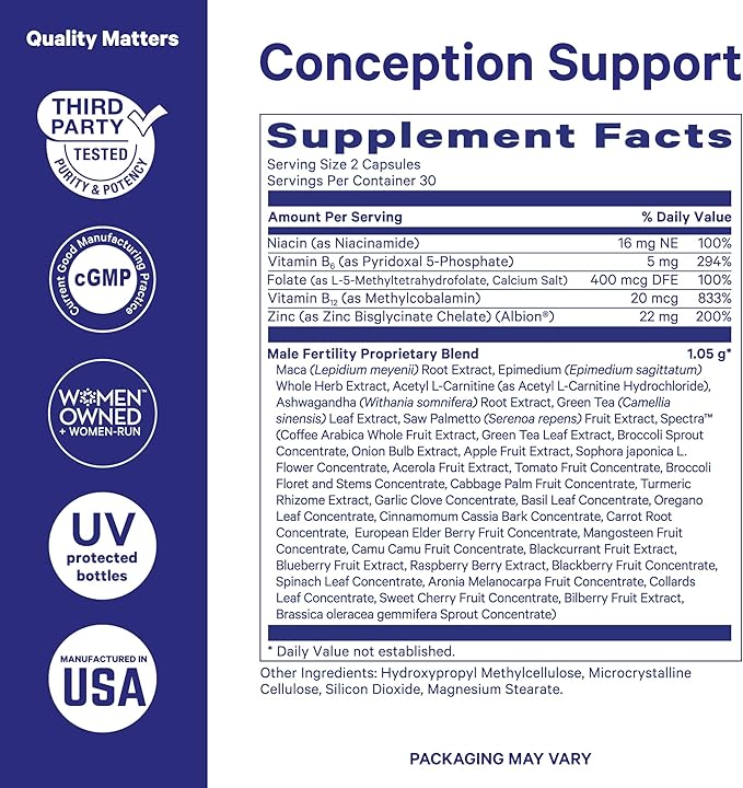 - It takes two to make a baby, so take two capsules of our male fertility supplement daily as you prepare for conception. Support sperm health, motility, drive, energy levels and performance, reproductive wellness, and hormone balance for men.