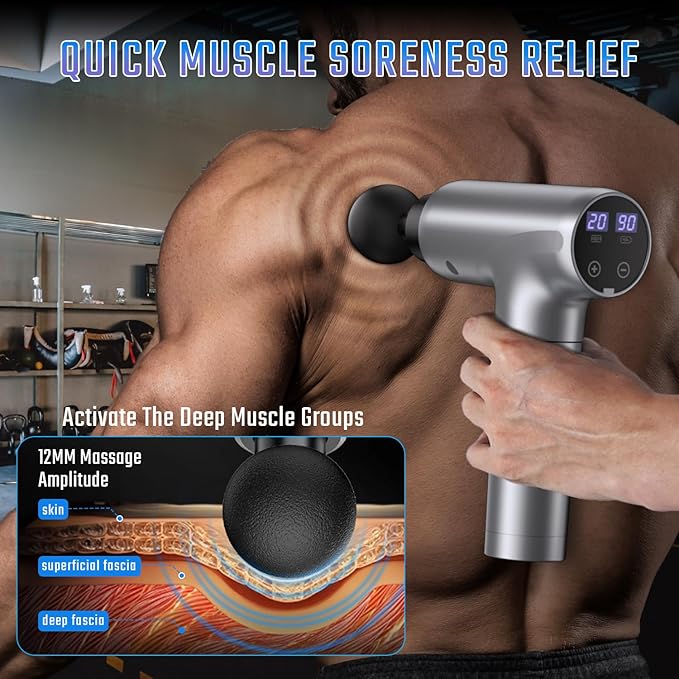 - 【Quiet Percussion Massage Gun】 With the advanced noise reduction technology, the hand held massager gun will not exceed 40dB. Also the ergonomic design prevents slipping and make it easy to grasp. After 10 minutes of continuous use, the muscle massager tools will automatically stop running to avoid overheat, providing intimate protection for your health and effectively protecting battery life.