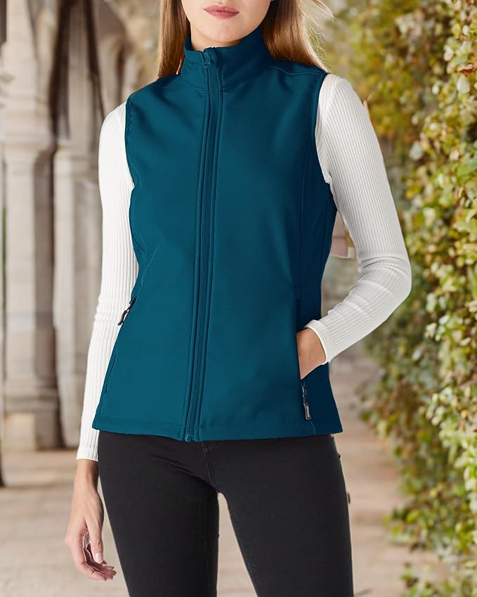 Outdoor Ventures Women's Lightweight Softshell Vest Windproof Fleece Lined Zip Up Sleeveless Jacket for Running Hiking Golf