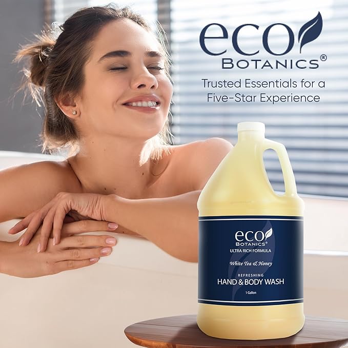 - LUXURIOUS HOTEL-QUALITY AMENITIES: Refill your wall-mounted or stand-alone pump bottle dispensers with our 4-gallons of Eco Botanics formulas, enriched with organic aloe, honey, and olive oil making it suitable for daily use and gentle enough for sensitive skin and hair. Perfect for hotels, vacation rentals like Airbnb and VRBO, guest rooms, and even home use.Diversified Hospitality Amenities, ideally designed and packaged to provide GREAT LOOKING hospitality service.