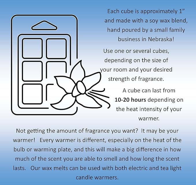 - Approximately 3 ounces of wax per package, for a total of 18 ounces, and 36 cubes.