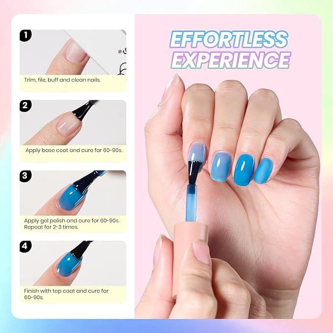 - 【Warm Tips】If the jelly neon gel feels thick or tacky in winter, place it in hot water for 1-2 minutes, remove from water, and shake well. Please conduct a skin test before use. Professionally formulated and only used for nails. Avoid contact with eyes, mouth, and skin. In case of contact with them, rinse immediately with water. Stop using the product if redness and itching develop.