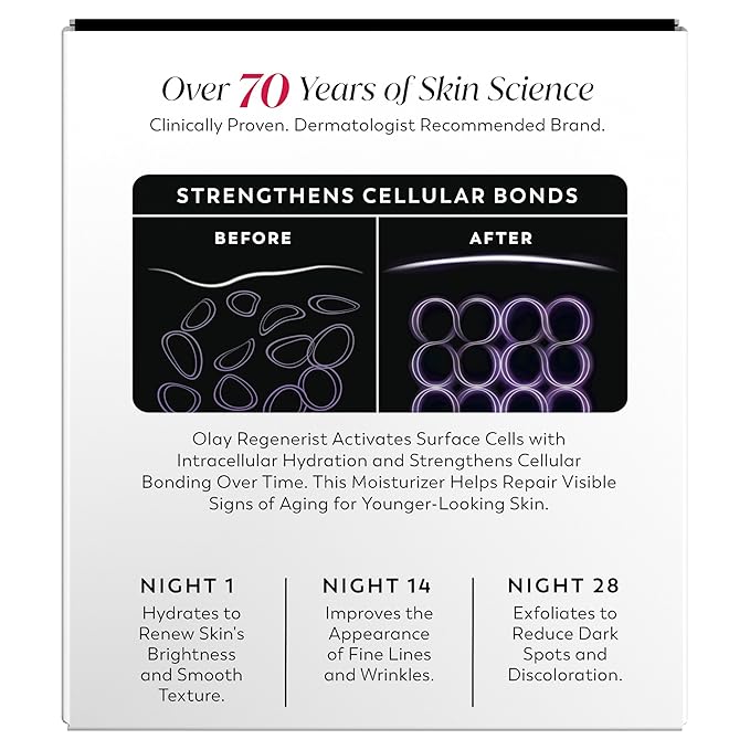 - FROM THE #1 ANTI-AGING SKIN CARE BRAND: Olay, a dermatologist recommended brand, presents this wrinkle cream with hydrating and smoothening benefits. Experience the benefits of Olay's Regenerist line, designed to provide for dramatic results without drastic measures.