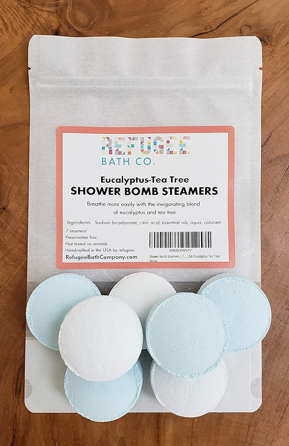 Shower Bomb Steamers | 7 Pack | Handmade in USA | Support Refugee Employment in USA (Eucalyptus-Tea Tree)