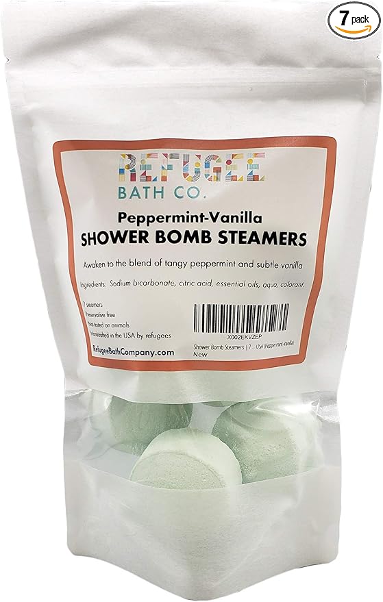 Shower Bomb Steamers | 7 Pack | Handmade in USA | Support Refugee Employment in USA (Peppermint-Vanilla)