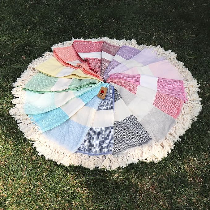 - High Quality: Each towel is carefully checked and packed by our teams. Turkish towels are soft and absorbent with 100% cotton yarns. Our towels becomes softer and absorbent after several washes. Also OEKO-TEX Certified yarns guarantees that our beach towels are free of harmful chemicals and perfectly safe for human use.