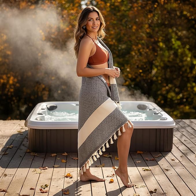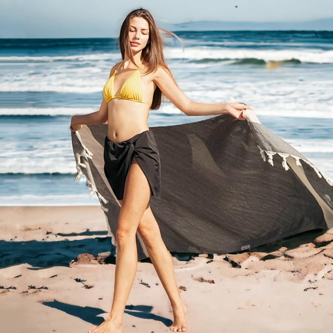 - Versatile: There are many ways to use Turkish Beach Towel. You can use the turkish towel as a scarf on the outside, shawl on the terminal, travel blanket on an airplane, oversized beach towel when you get off the plane and go to the beach. Quite useful as a travel beach towel. Or you can use as turkish towels for bathroom, yoga towel, pool towel, sauna towels, yoga blanket or a throw blanket in your house.
